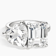 Toi et Moi Heart and Emerald Cut White Topaz Cocktail Ring shape : heart \ emerald color : white clarity : eye clean
